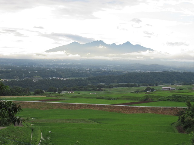 田んぼにピントを合わせると、山はうっすらぼやけて。