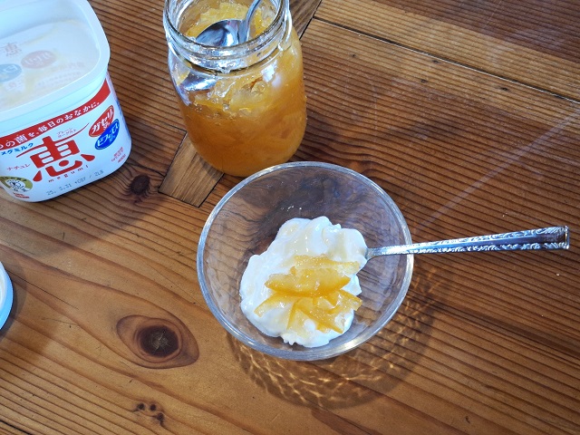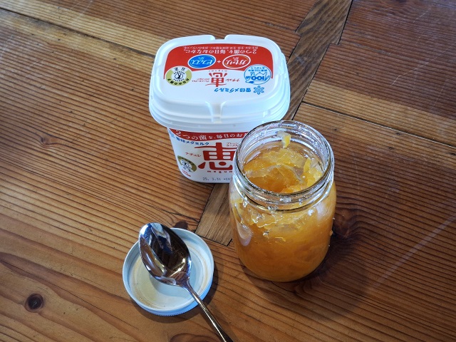 ちょっと蓋が堅かったけど、力を込めたら開いた大瓶の手作りマーマレード。