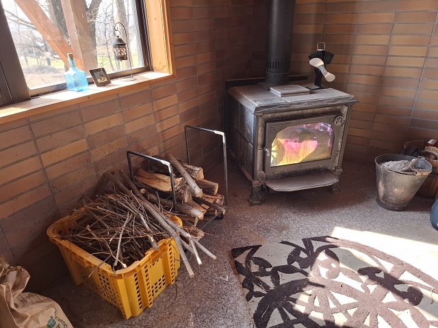 お休み中の薪ストーブ。きっとまだ、使うはず。
