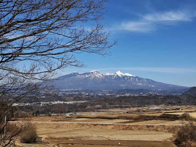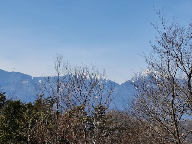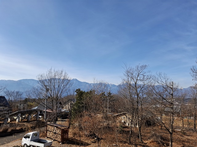 鳳凰三山。ベランダに立つ位置によっては、地蔵岳のオベリスクも見えます。