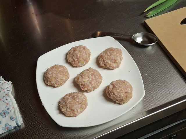 なんでまた、こんな日にと思いつつ、鶏挽肉をよく混ぜ捏ねる。しっかり捏ねた方がおいしくできあがるのだ。刻んだ葱とおろし生姜を加え、さらに捏ねる。