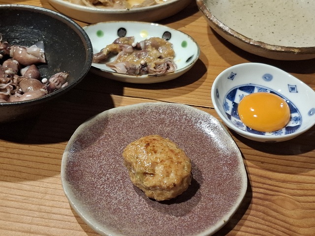 じゅうぶんに捏ねて丸めた鶏のつくねは、上等のでき。とてもおいしかった。