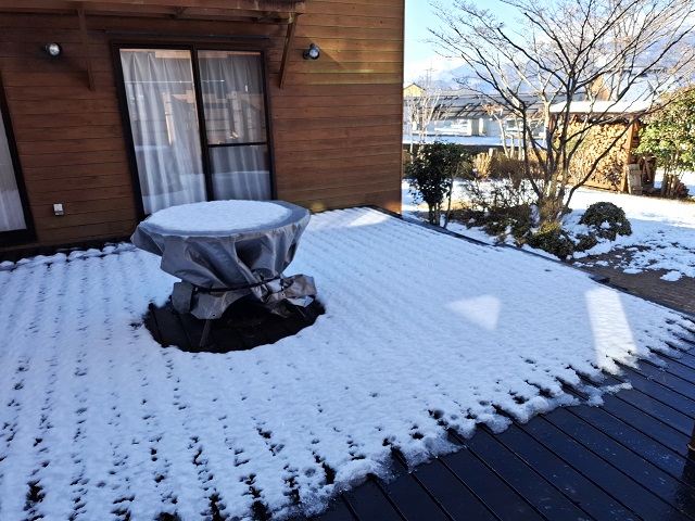 ウッドデッキ。こういうのも、斑雪っていうのかな。