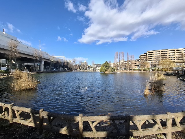母の施設までに通る「見次公園」の池は、まさにこんな風景。しかし、春一番ではなかったのだから、季語に含まれる南風の暖かさなどは、わたしが感じた風の体感温度とは違ったのだろう。