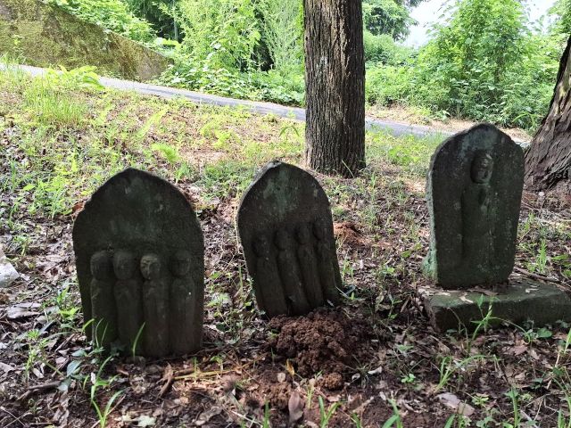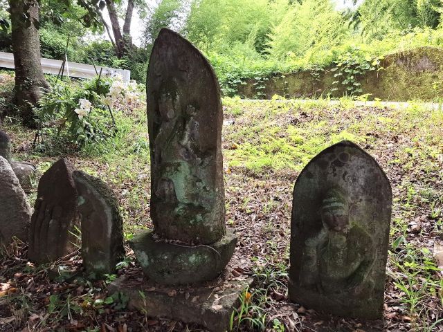 お墓の脇には、石仏さんが並んでいます。頬杖をついた如意輪観音さんもいますね。