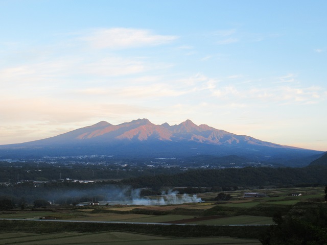 紅葉にはまだ少し早いが、朝のひんやりした空気のなかにたたずむ八ヶ岳から、”粧う”支度を調えた雰囲気が伝わってきた。