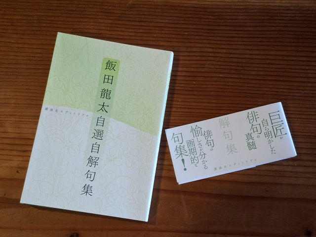山廬で購入した『飯田龍太自薦自解句集』。読むのが、楽しみ。