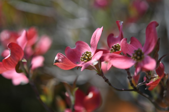 赤ともピンクともいえる色合いのハナミズキ。