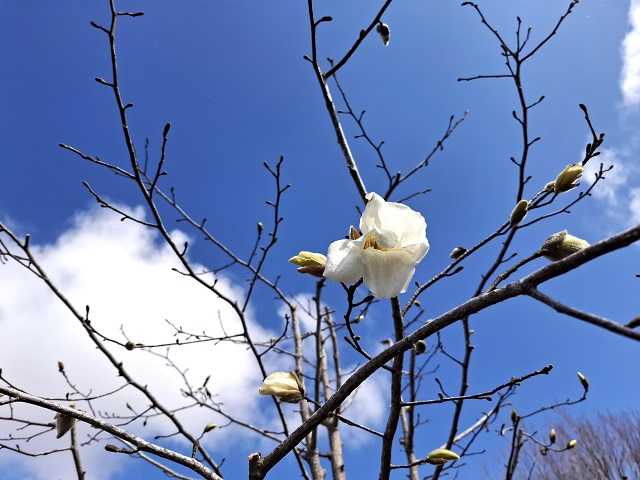 ひょろ長いあのつぼみからこんなにのびのびとした花が咲くこぶし。