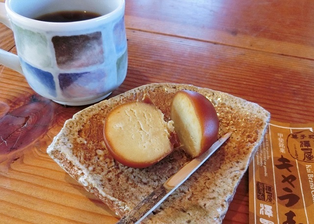 山梨銘菓「くろ玉」のキャラメル味。