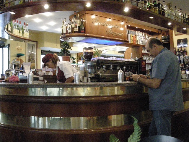 朝のカフェでは、小さな小さなエスプレッソの珈琲カップを持ち上げ、ひと口でクイッと飲んで仕事に行く、といった姿をよく見かけた。一瞬のことだから、カウンターで立ち飲みだ。ゆっくり珈琲ブレイクはしないのか、イタリア人、と不思議な感覚に陥った。