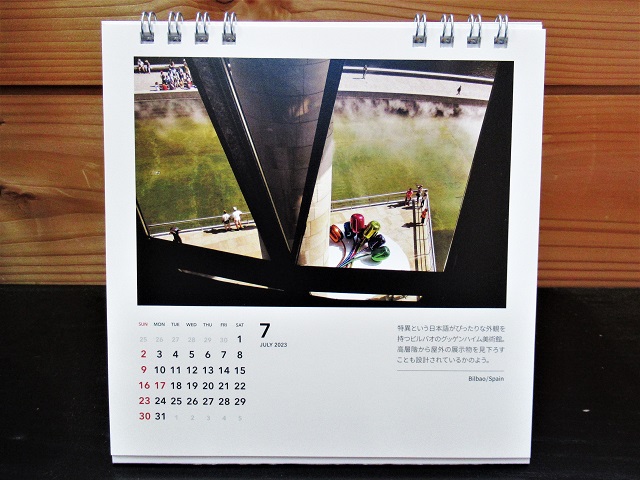 夫であるYasuoMaedaのlife is funカレンダー、7月の舞台は、スペイン、バスク地方のビルバオ。ニューヨークのグッゲンハイム美術館の分館で撮った写真だ。