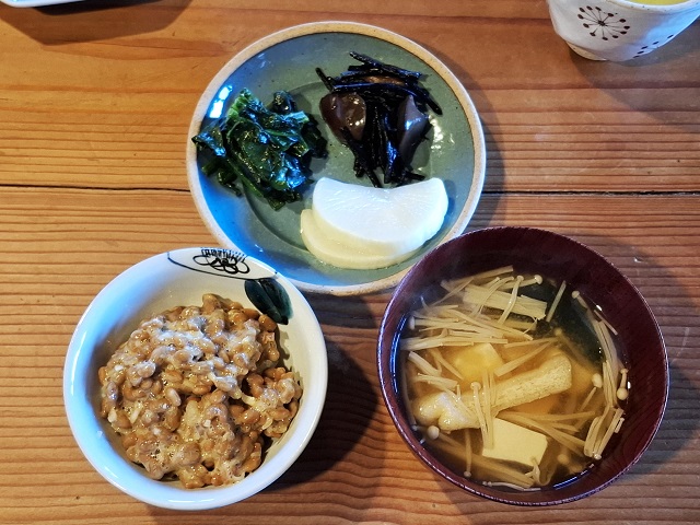 ほうれん草の葉っぱの部分は、バター炒めに。朝食風景。