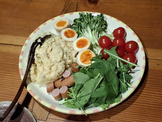 そして、ポテトサラダ&ルッコラ、かいわれ大根、ミニトマト。