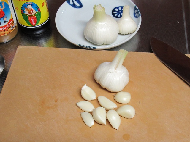 そのなかに、堀立の土のついたにんにくもあり、さっそくカオマンガイに使うことにした。