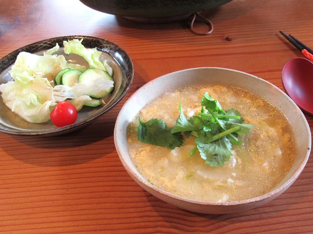 翌朝、ふと思いつき、そのスープを雑炊にしてみた。