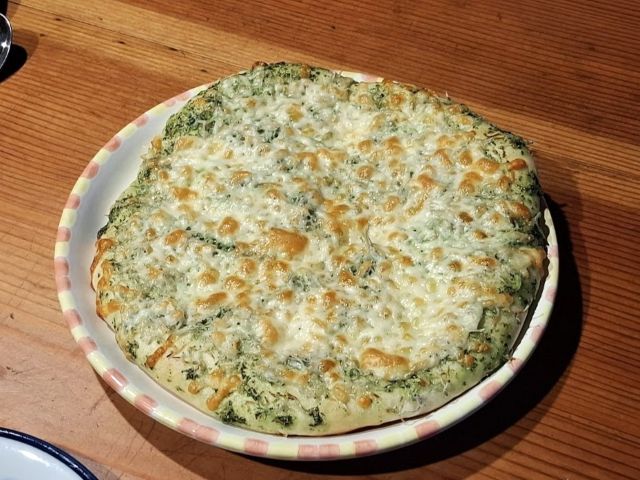 ジェノヴェーゼソースのしらすピザ。写真を見ると、なんだかわからないものにも見えます(笑)