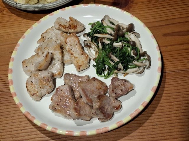 ポークソテーの夕餉。ロースとヒレ肉を焼いて。