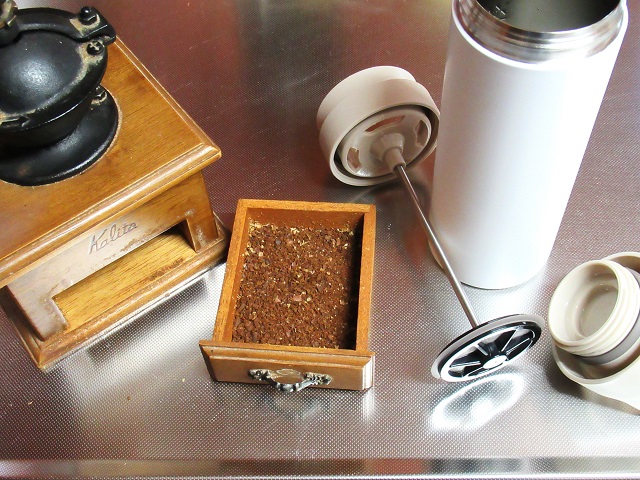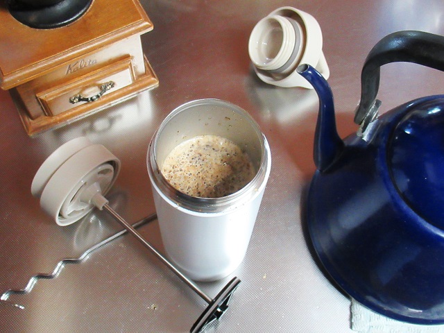 10日ほどして珈琲プレスボトルが届き、ようやく初プレスの運びとなったのだった。