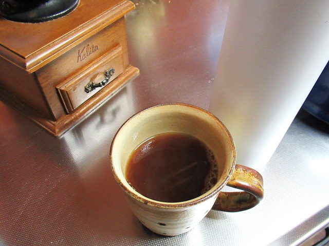 初めてプレスした珈琲は、いつもとはちょっと違う味わいで美味しかった。酸味より甘みが増しまろやかな風味、といった感じか。