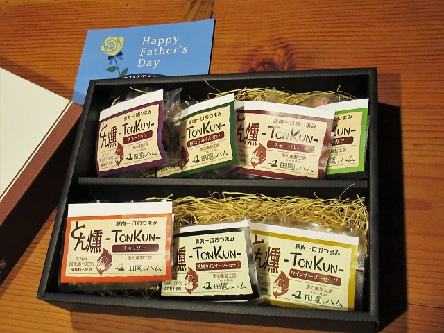 「とん燻~豚肉一口おつまみ」とかかれたウインナの詰め合わせで、プレーンのウインナや粗挽きウインナのほか、チョリソーや、ハラミやガツ、スモークレバーなど7種類が少しずつ詰め合わされていた。