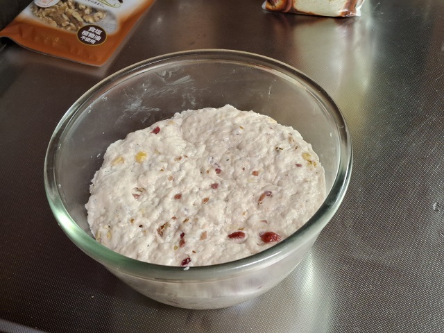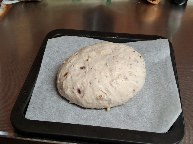 半年ぶり、いや、それ以上だろうか。久しぶりに天然酵母のパンを焼いた。クランベリー胡桃パンだ。