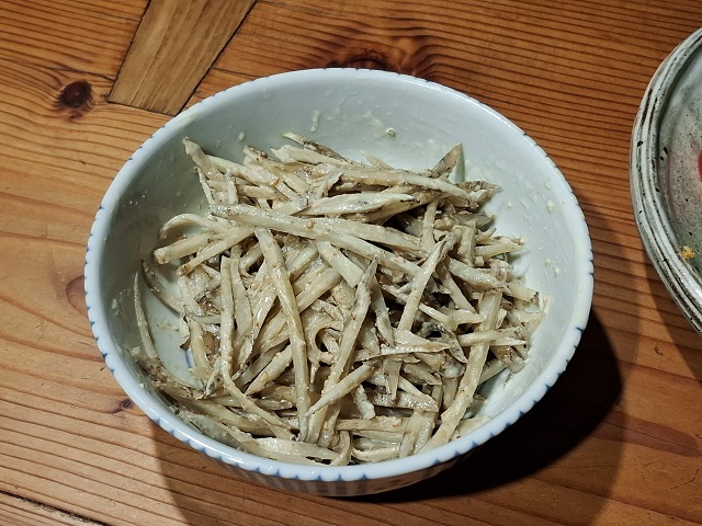 牛蒡、和の野菜ですね。マヨネーズも合うけど、お味噌味、やっぱりイケました。