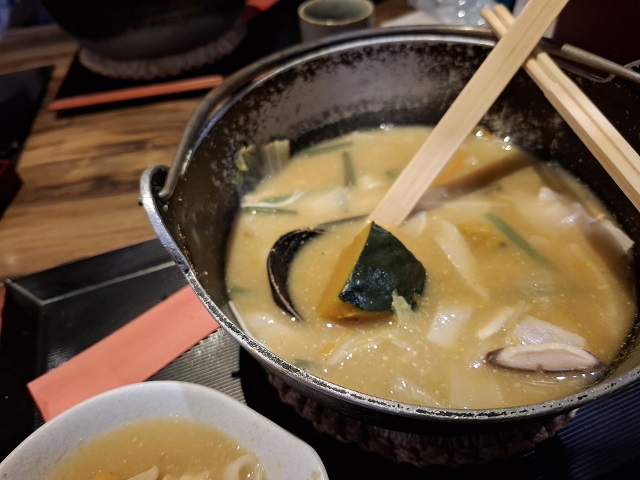 これは以前、昇仙峡ウォークしたとき食べた「菅原屋」のほうとう。自家製米麹味噌で味つけしたとか。お鍋で熱々で出すのが、ほうとうの流儀なのかな。