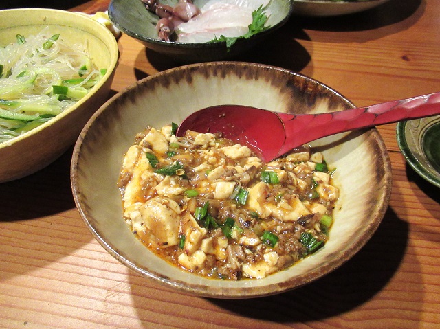 麻婆豆腐は彼の得意料理で、わたしが作っていたクックドゥの麻婆とはまるで違う。