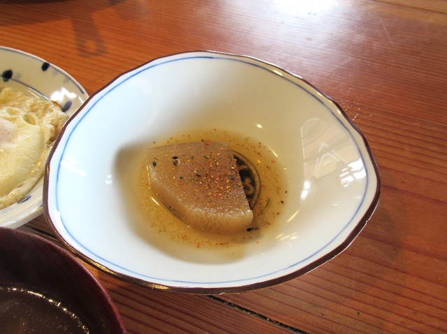 最近いただいた1/4にしないと太すぎて鍋に入らなかった大根の煮物と。