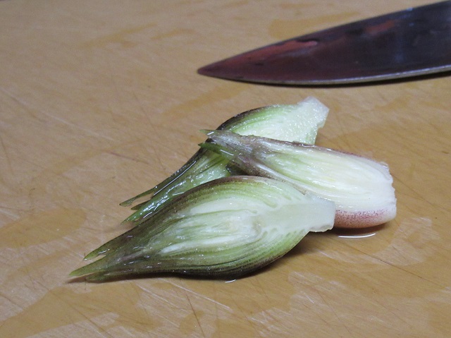 切るとぎゅっと硬くしまっていて、新鮮なのがよくわかります。きれい。