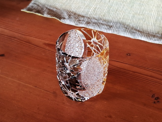 「水鏡」という名の江戸切子のシリーズで、わたしたち夫婦が結婚してから長くお世話になっているお仲人さんの会社の製品。