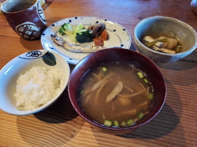 味噌汁の鍋に入れた水に、ささがきした牛蒡を放つ。