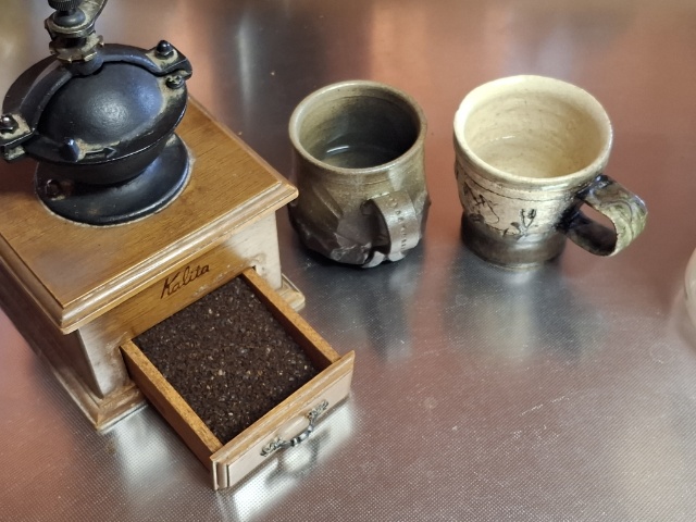 ミャンマーの中深煎り。いつも浅煎りなので、ミルを回すハンドルが軽いんです。