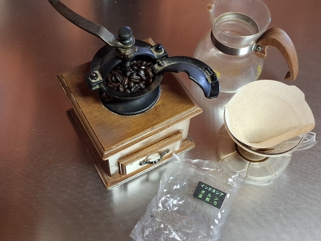 インドネシアの深煎り。夫がマッハコーヒーでオーダーした珈琲です。