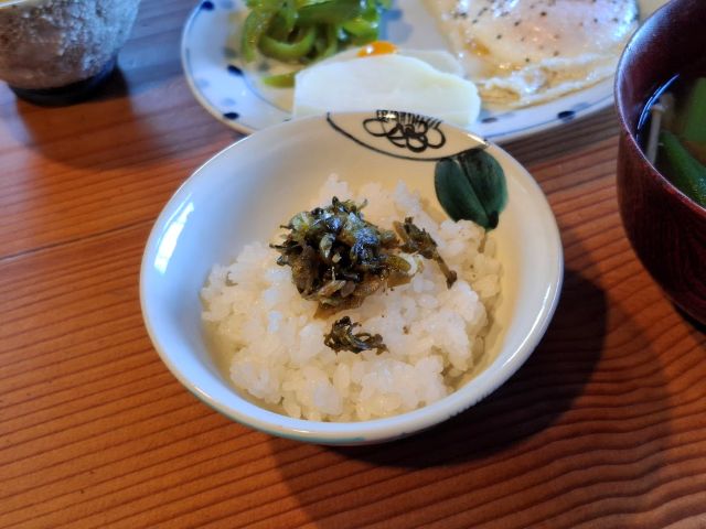 ご飯のおともですよね~辛くて、おいしいです。