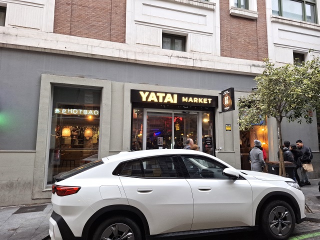 「屋台マーケット」外観。駐車スペースになっているのか、縦列駐車が続いていました。