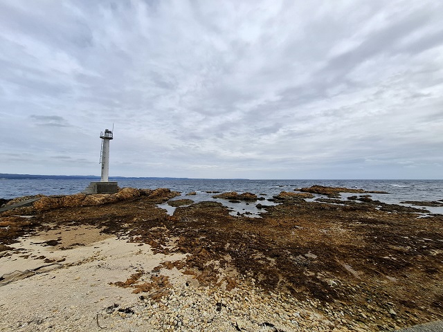 能登町赤崎海岸の灯台。珠洲から海沿いの道が続いています。