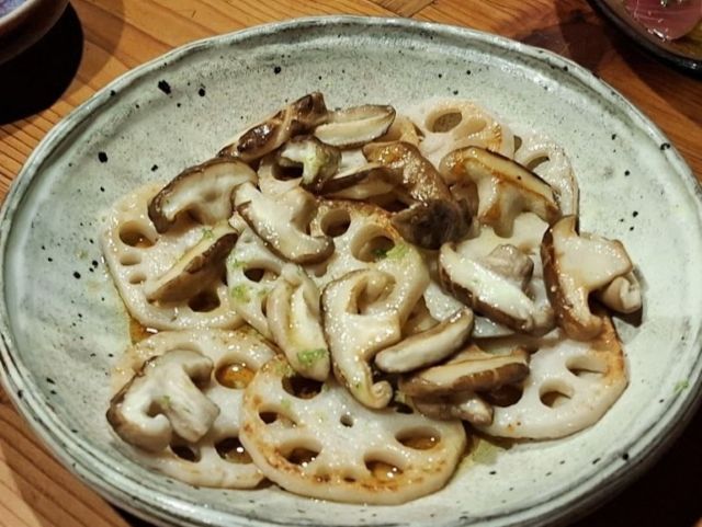 久しぶりに食べたいと思ったのは、リュウジの「焼きレンコンと椎茸のカルパッチョ(すだちソース)」だ。