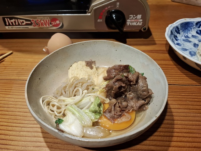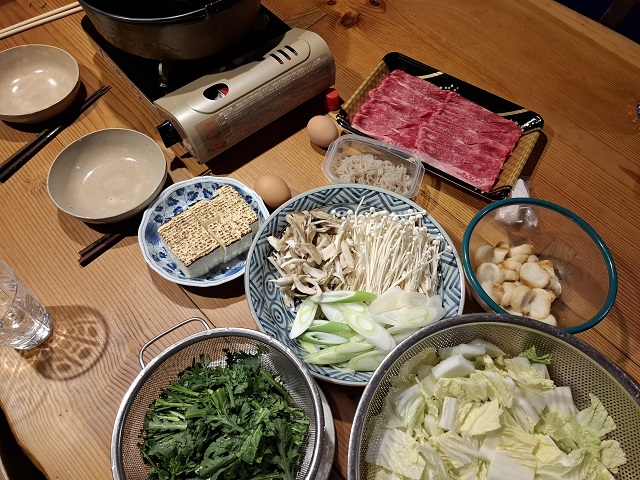 何もない日のすき焼きは豚すきだが、ちょっとだけ奮発して牛肉のすき焼きに。