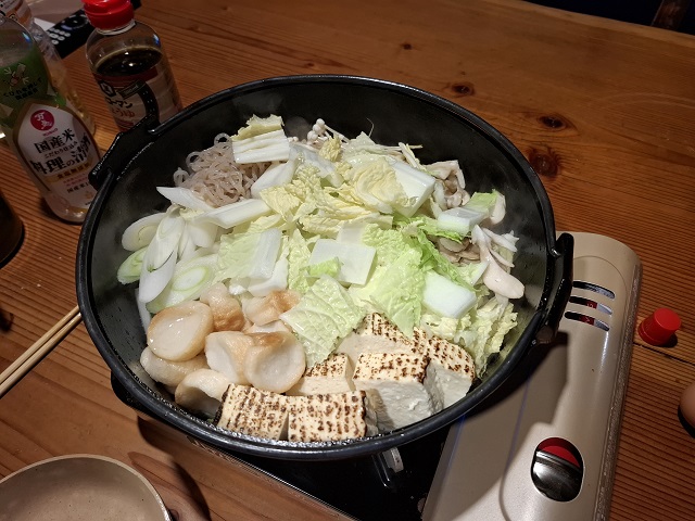 水で戻したお麩も欠かせない。ここ数年、豚すきの割合が多くなり、エノキダケのほか舞茸も入れるようになったのは、歳をとったせいもあるかもしれない。