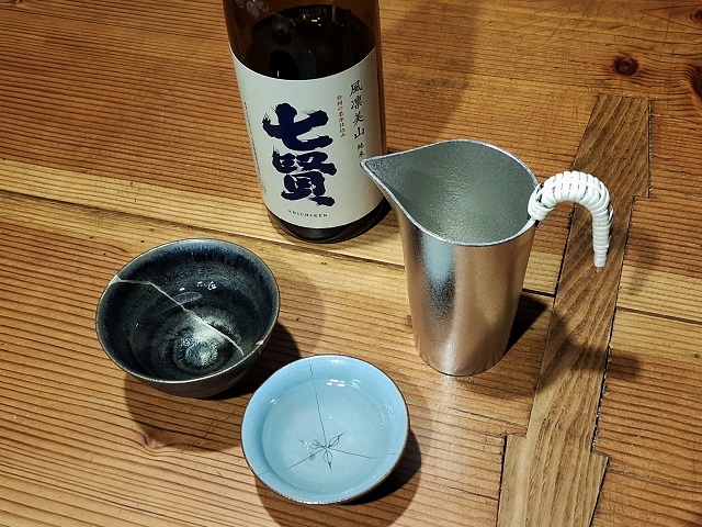 冷やにも、涼(すず)冷え、花冷え、雪冷えという美しい名があるそうです。ちろりで冷酒を楽しむ季節も、すぐにもやってきそう。これは、常温で飲んだ七賢の風凛美山。