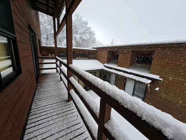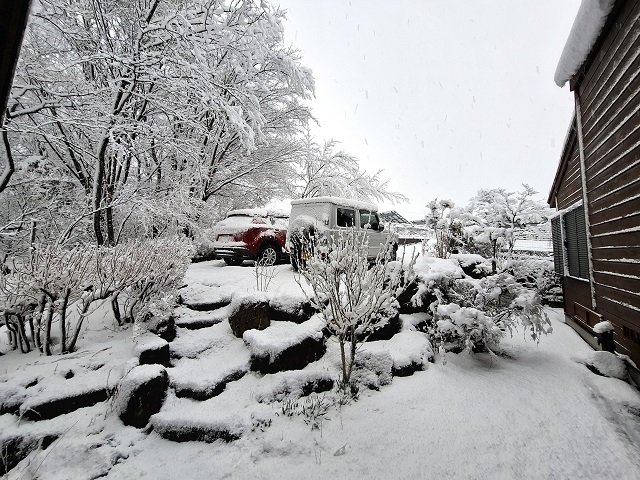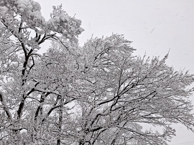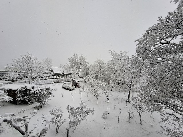 きのうの朝、窓の外を見ると真っ白だった。