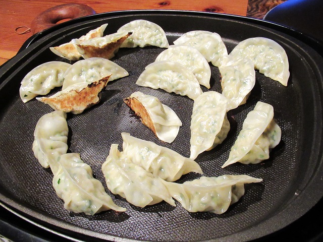 1日目。ホットプレートで焼き餃子。