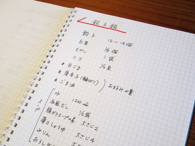 レシピノートに記しているレシピで、塩揉みした白菜をたっぷり入れる。それが美味い。