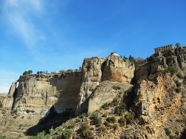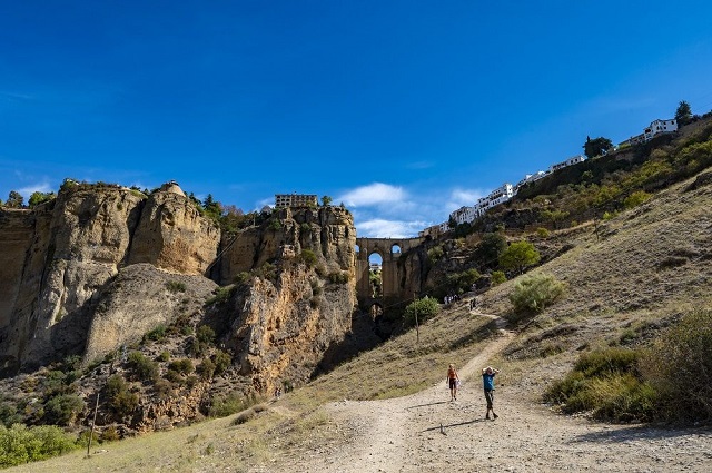 グアダレビン川の浸食によってできた渓谷の上に、新旧の町が1本の橋でつながっている風景は圧巻で、断崖絶壁の町とも呼ばれている。