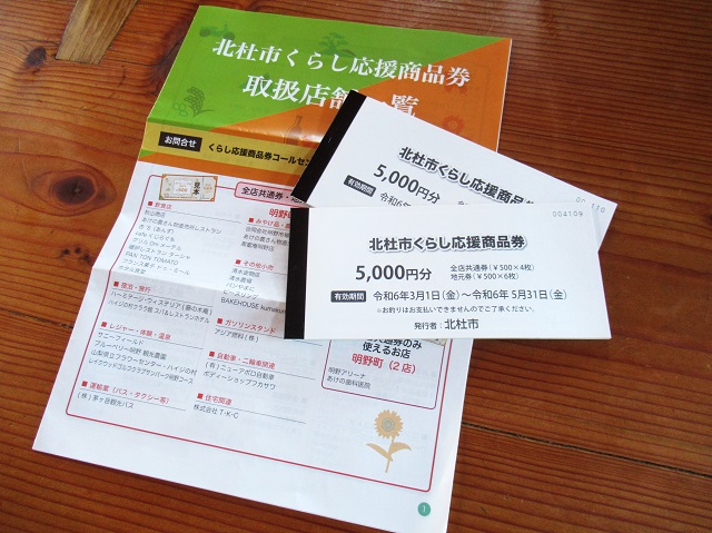 北杜市から「くらし応援商品券」が配布された。