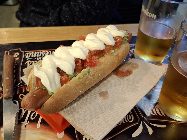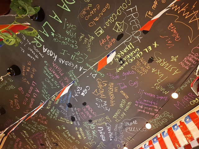 これは、ランチした「サン・フェルナンド市場」のチリ料理のホットドッグ屋さんの天井。