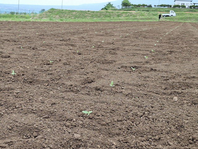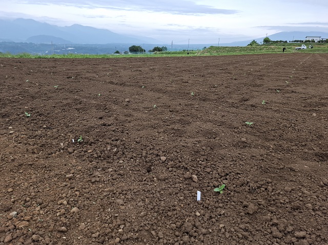 そして、誰もが口にしていたのは「こんなに間隔開けるんだ」ということ。50㎝ほど離れた小さな苗たちで畑いっぱいにひまわりが咲き乱れるさまを想像するのは、難しい。