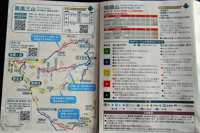 さらに難易度で色分けされた登山道を見ると、以前ひとり軽装でツツジを見に出かけた甘利山にも難易度の高いコースがあり、安全なコースしか歩かなかったものの、知らずに山へ近づくことの怖さが想像できた。